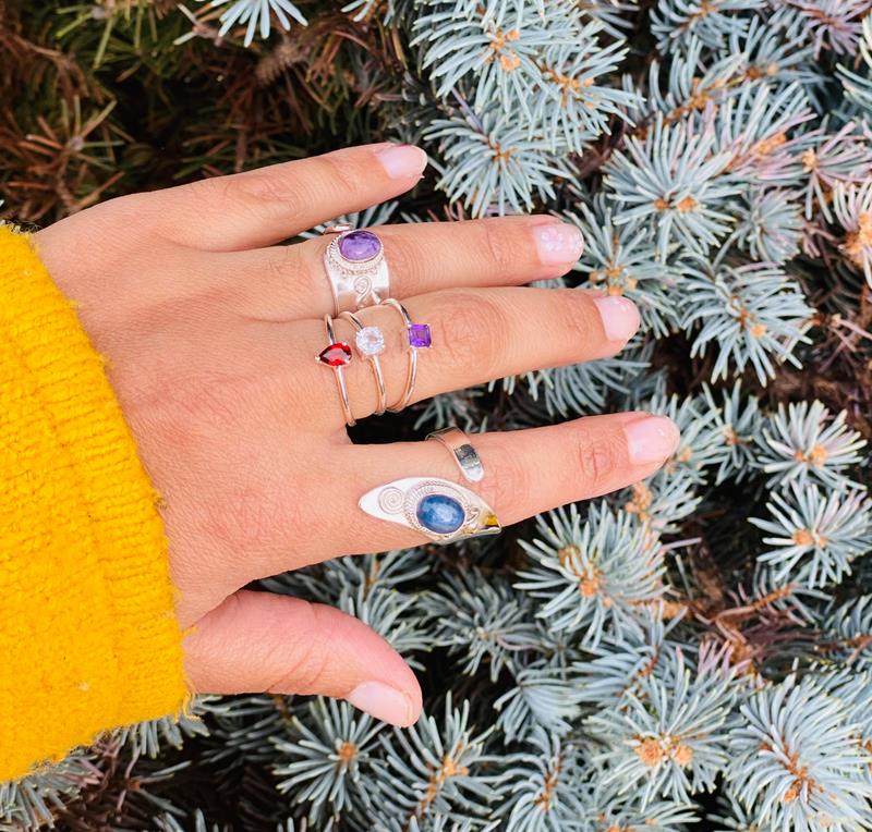 Anillo de Plata de Ley 925, ajustable y con una piedra central llamada cianita, que dicen aporta tranquilidad y calma a quién la lleve, lo que hace de este anillo un conjunto perfecto!